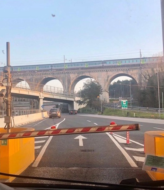 At the bottom of the mountain there was a toll booth which like many of the toll booths in Europe (but especially in Italy) were impossible to use in a camper-van. There were two slots that you could use to pay – one for ordinary saloon cars and one for trucks – neither of which can be used easily by a camper-van!