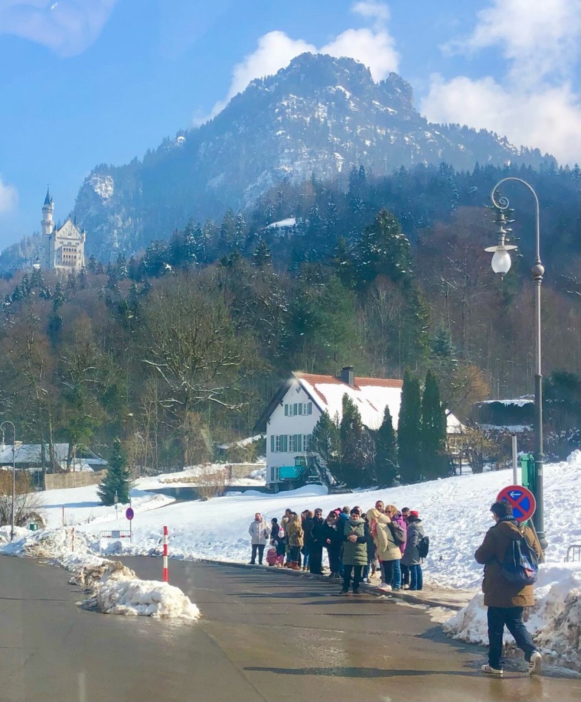 As there was a steep 30-40 minute walk up to the castle and – judging by the crowds – bookings would have probably only been available later that morning, we decided to keep going as we had planned to cross over the border to Austria that day and had quite a long journey ahead.