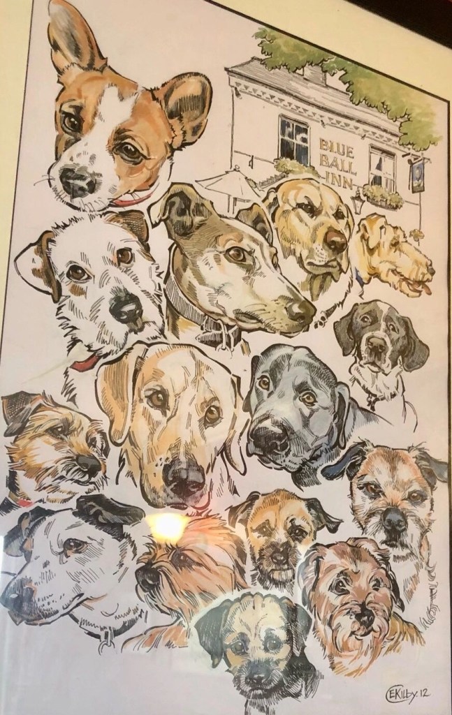 The pub had a cosy fire and was very welcoming both to humans and other animals! On one of the walls was a painting of all the dogs that are “regulars “ at the pub.