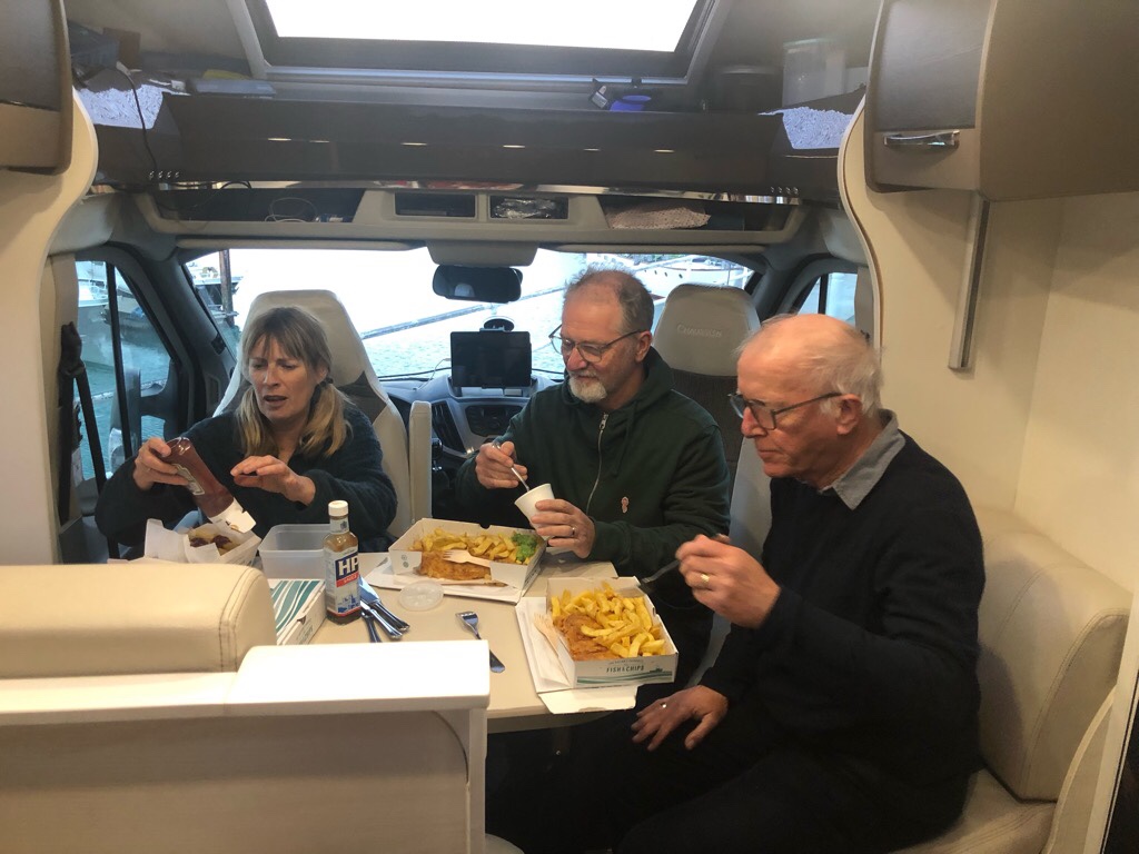 Arriving on the English coast definitely called for fish and chips for dinner which we bought on the sea front and ate in the van which was parked overlooking the famous harbour. Delicious food with a great view!