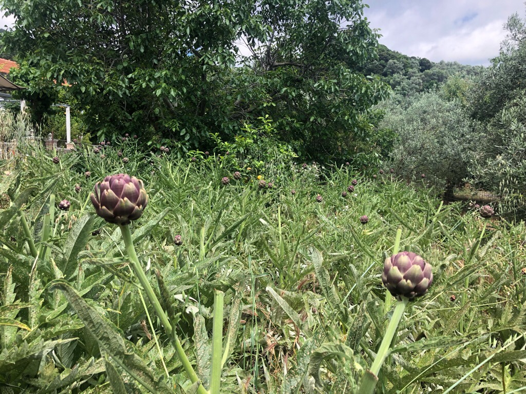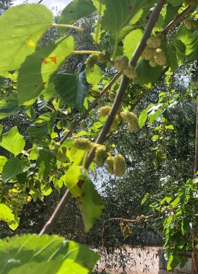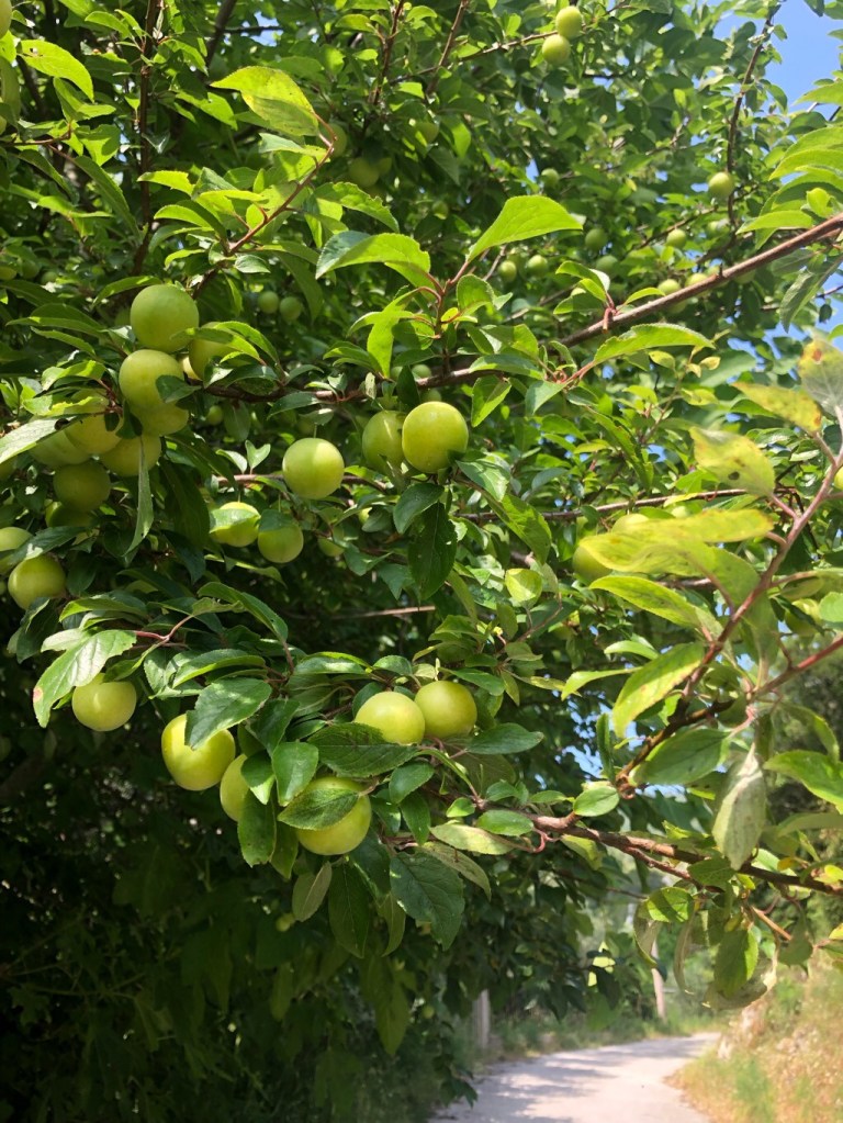 On the first walk we saw loads of fruit trees in the gardens we walked past – lemons, oranges, peaches, cherries and mulberries, as well as an abundance of gorgeous flowers – plus two tiny white washed chapels at the roadside.