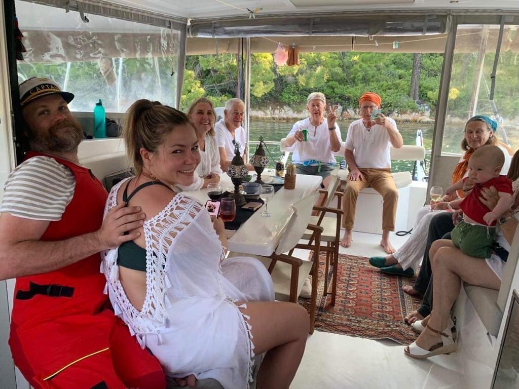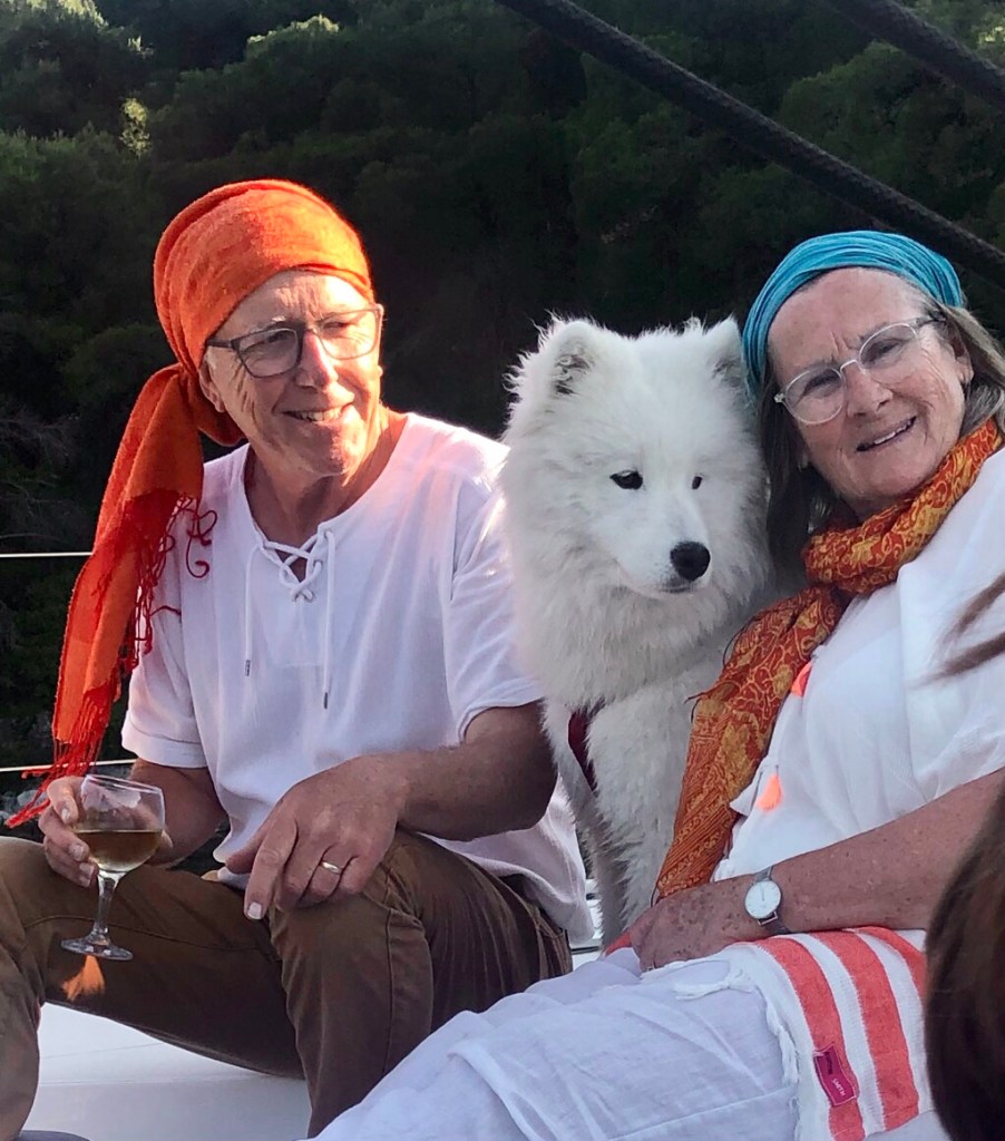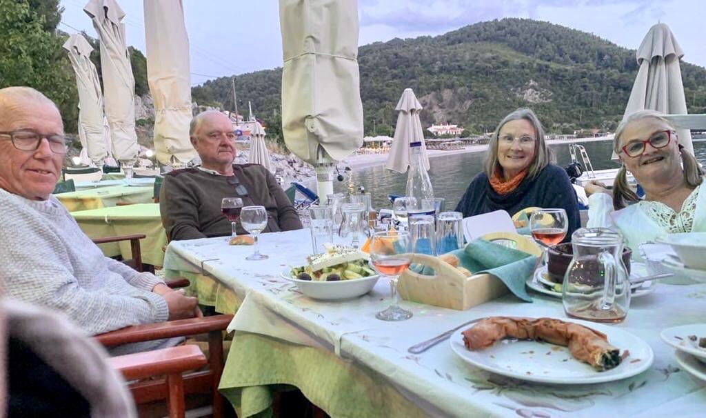 As Skopolos was the island on which much of the movie Mama Mia was filmed, Sue and John decided to host a Mama Mia party for their guests’ last night.