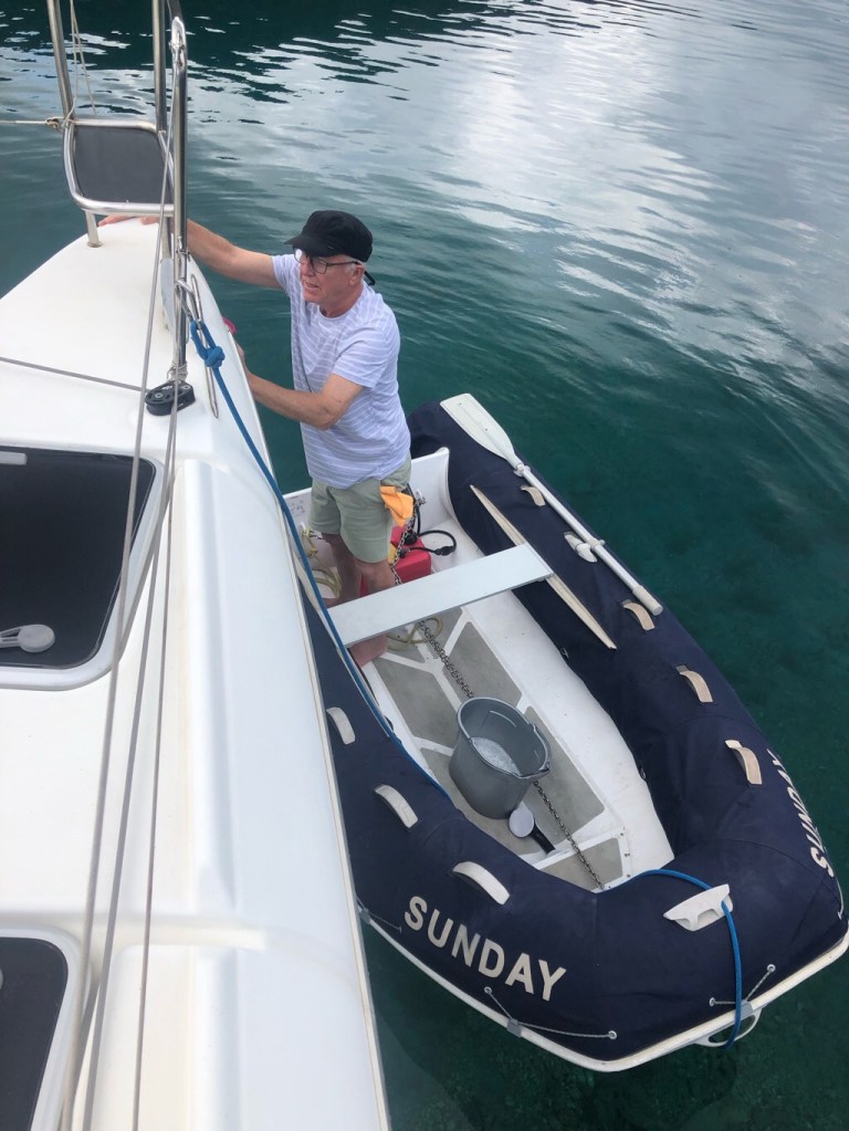 Early the next day, Jonathan hopped on board to help John tie up in Skiathos where Catabella’s boat guests would catch their onward flight. Rather than do the two crossings Sue stayed aboard Sunday and we waved a sad “goodbye” as Catabella motored away.