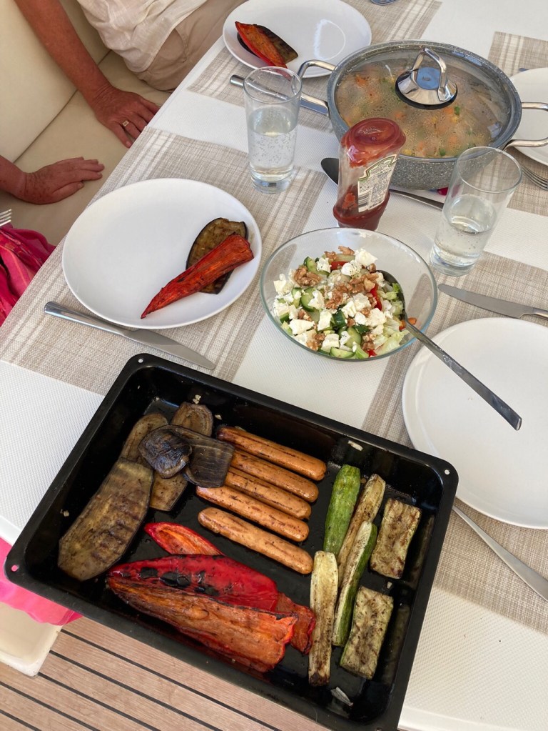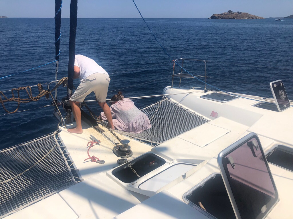 Before they left we had a lovely evening on Catabella, eating good food, drinking wine and playing quiz games. We all had a great time except for the youngest member of the Catabella crew who appeared to be suffering from heatstroke and was feeling very lethargic and had thrown up (later we found it wasn’t heatstroke!)