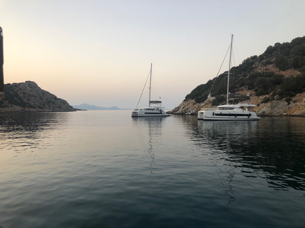There was one more anchorage to enjoy before our return to Poros – a small cove on the mainland in Vidhiou Bay. It was here that Catabella joined us although Sue was still out of the country due to running out of days allowed within the Schengen Zone.