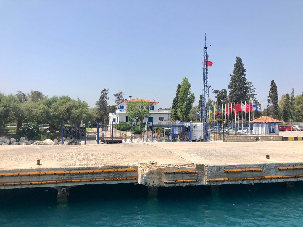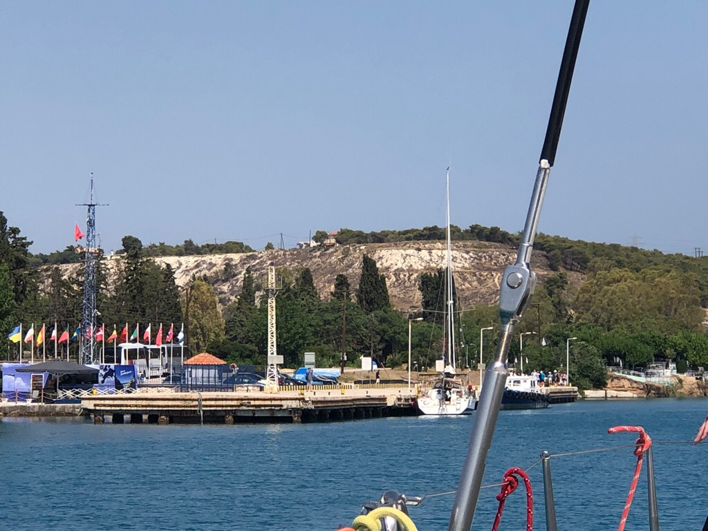 The fuel truck was waiting for us to refill our diesel tanks. While we filled up it was interesting to see the vessels coming through from the Ionian side – a super yacht, a tourist boat crammed with eager travellers taking lots of photos and other lots of other boats of different shapes and sizes – including a canoeist, Ara Khatchadourian, who was “rowing for peace” from Marseille to his hometown of Beirut (Lebanon).