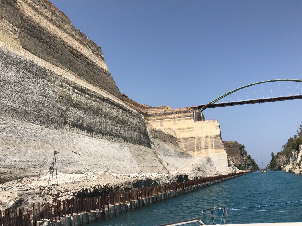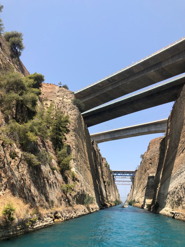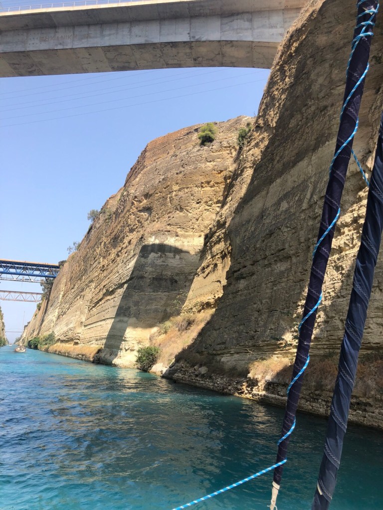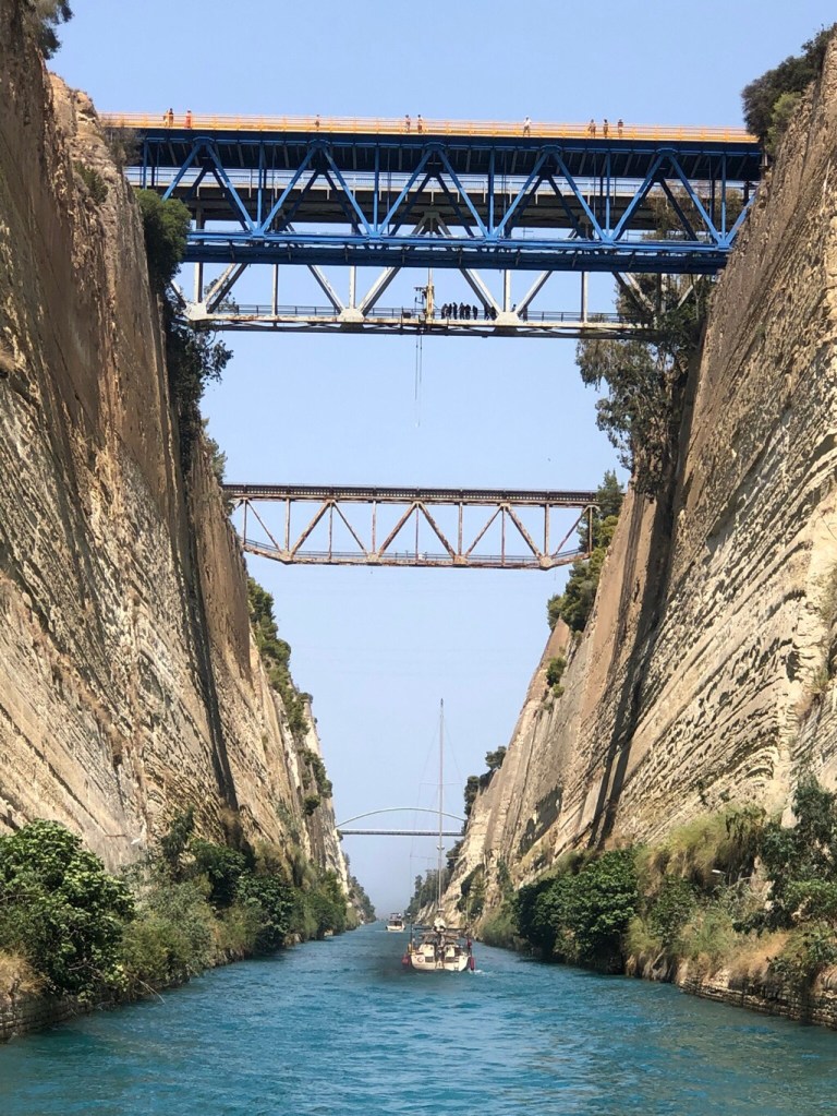 The sadness of our daughter and son-in-law’s departure was tempered by the anticipation of ticking off another bucket list item – traversing the Corinth Canal.