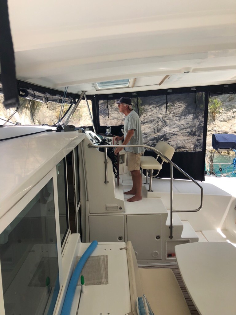 We had only just set off when we saw his boat start heading for the bank – it was extremely alarming as we thought maybe his steering had gone as a result of his accident. However, I think the skipper had thought he’d left the self steering on (and he hadn’t!) and ducked down below to fetch something. He leapt up the companion way stairs faster than the speed of light and the yacht was on track again immediately.