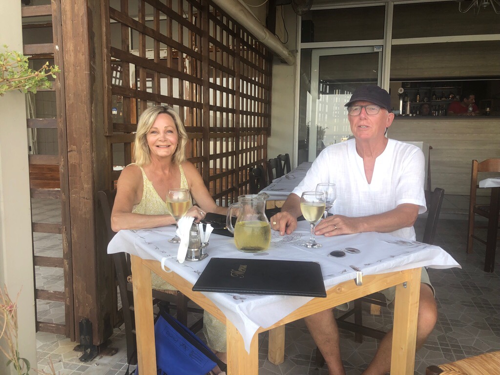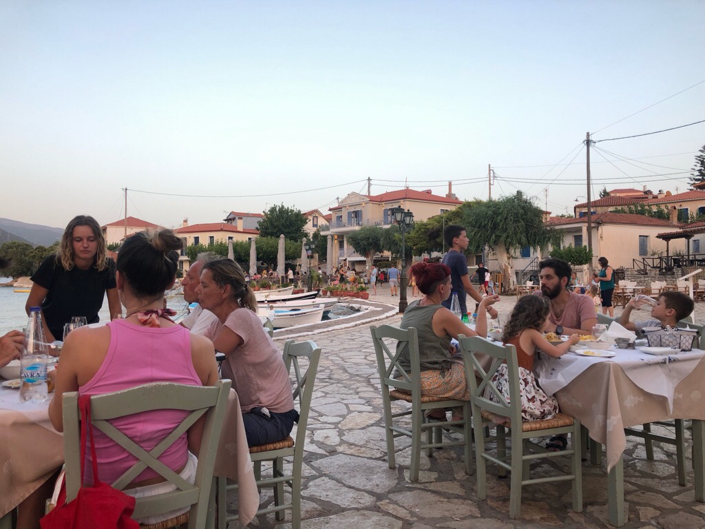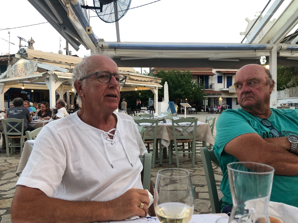 There was a joyful reunion for the Catabella crew that evening and we all celebrated at a pretty local taverna overlooking our anchored boats.