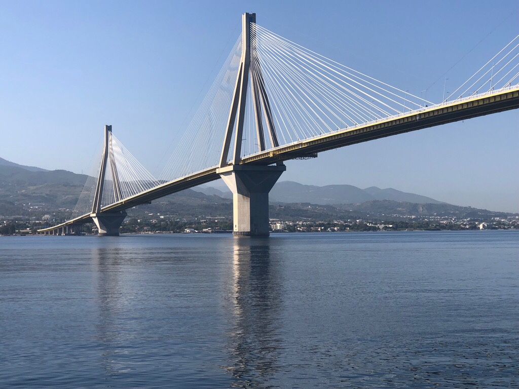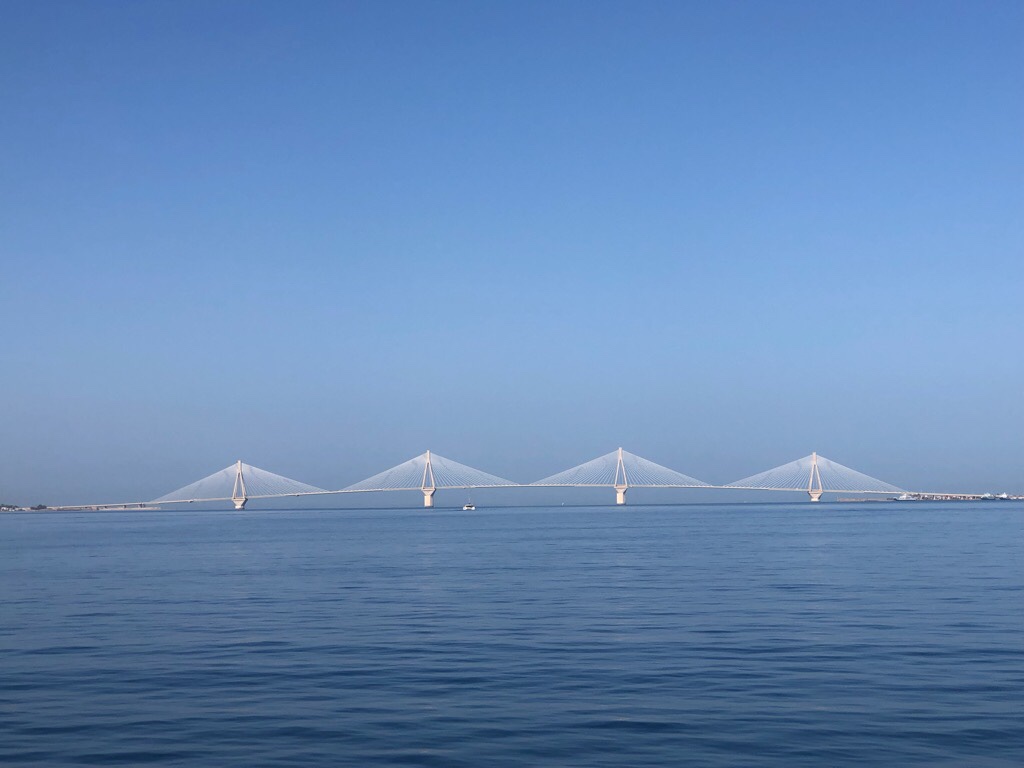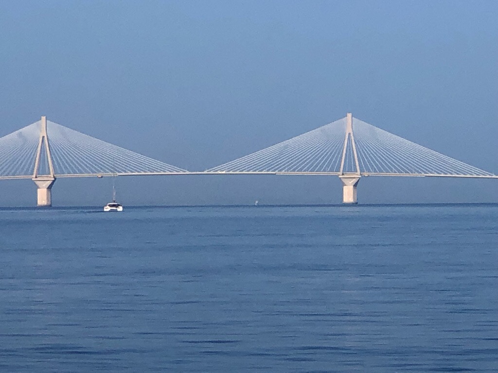 Before we reached this rather strange place we travelled under the magnificent Rio-Antirrio Bridge near Patras.