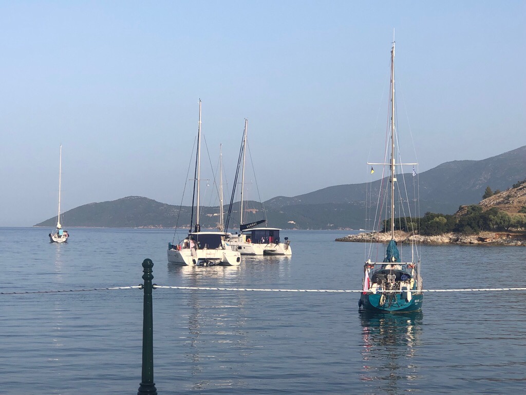 We left the lagoon early the following morning on our way to the Ionian Island of Kefalonia. We made good time and were anchored in the pretty bay of Agia Effimia well before Sue and John’s family arrived by plane from England.