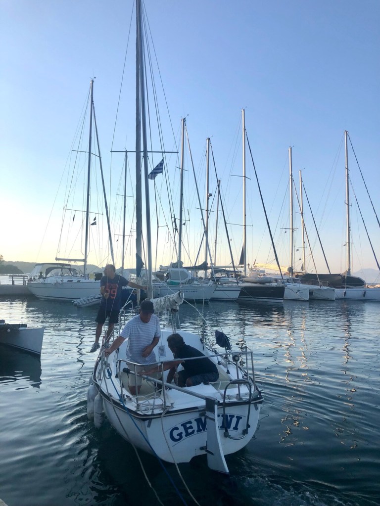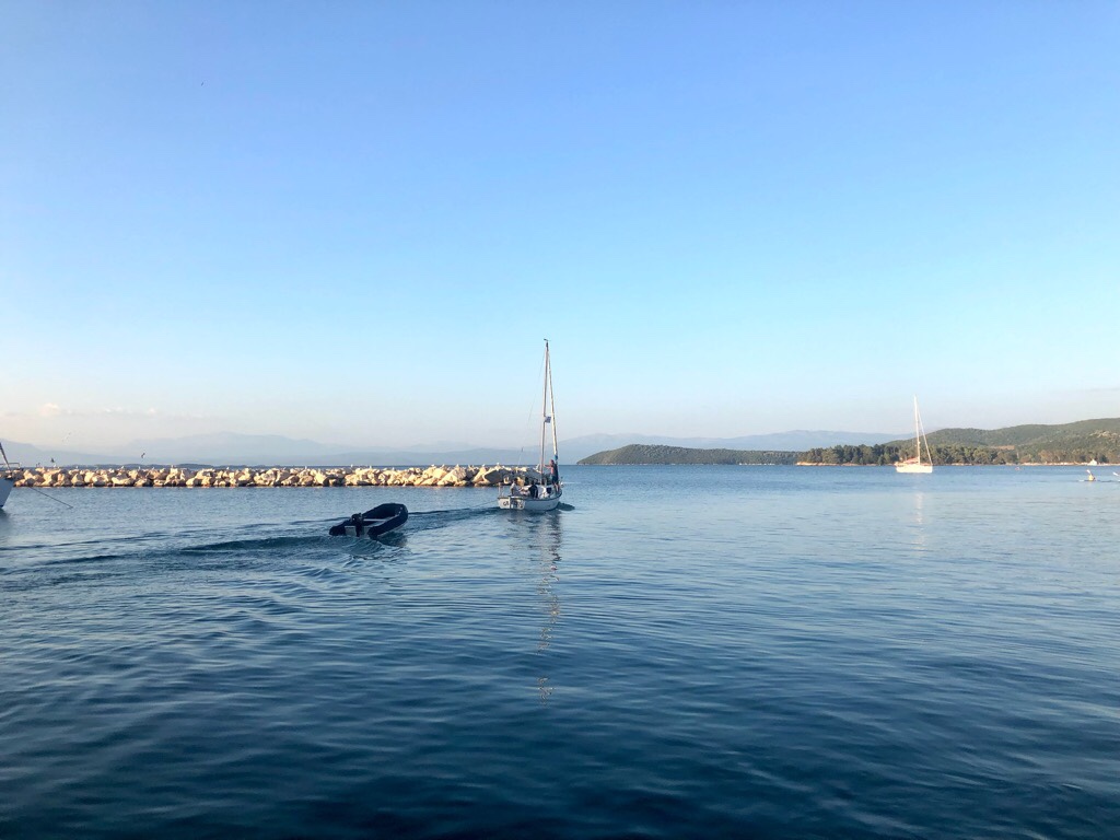 As she was leaving from Preveza which is very close to Vonitsa, it seemed the right time to return – this time in our boat! We did anchor in the beautiful anchorage – not once but twice – and ended up not even spending one night there!