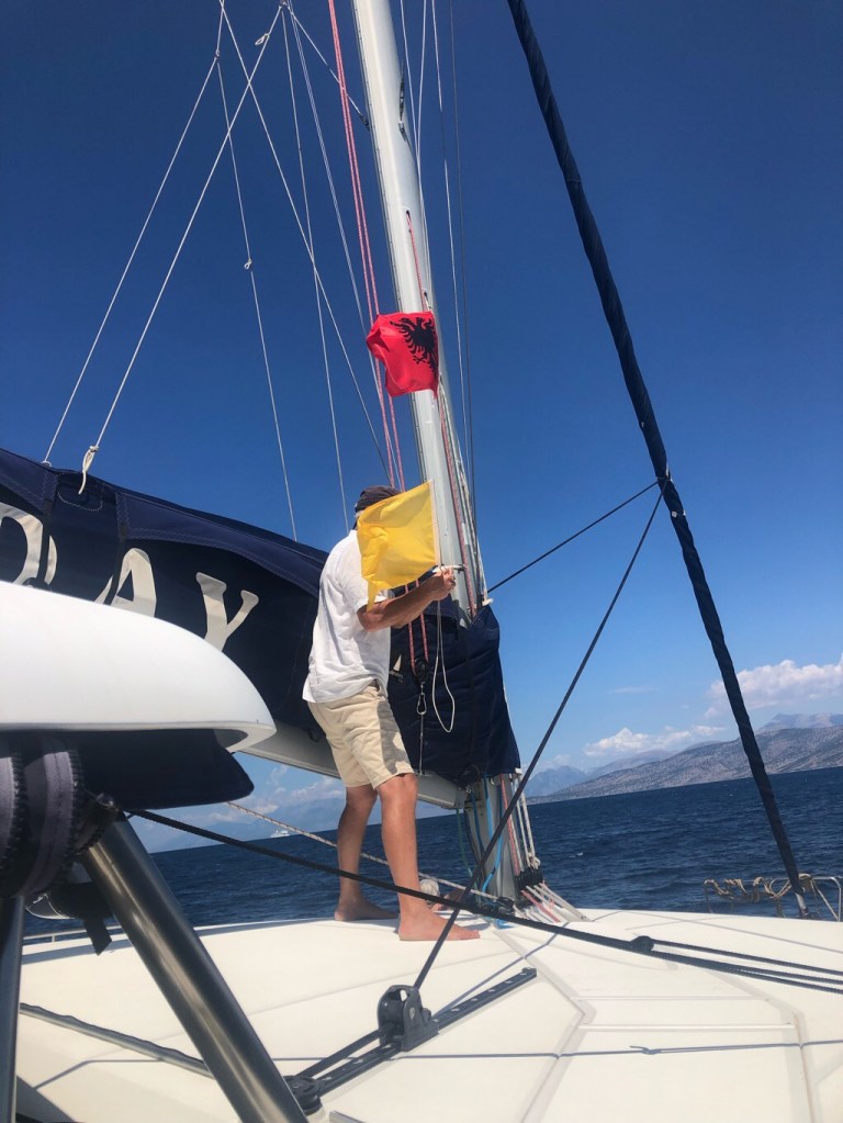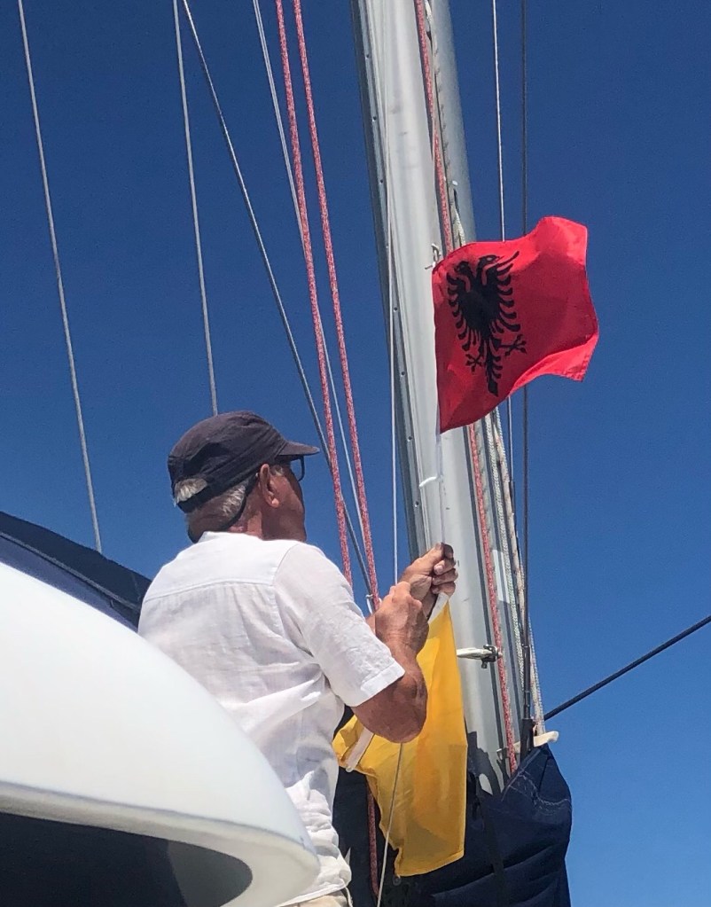 We then travelled through the narrow channel between Corfu and Albania where we dropped our Greek flag and raised our Albanian flag with the yellow “Q” flag that indicated that we had yet to clear immigration, quarantine and customs.