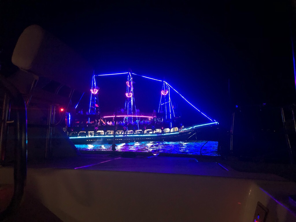 Back on the boat later that evening we were invaded by noisy pirates – quite literally! As soon as night fell, the tourist “pirate” boats cast off with “music” blaring and lit up like Christmas trees. They motored very slowly and loudly past us and sailed around the bay for an hour or two and then made their way back – very slowly and loudly – to their mooring.