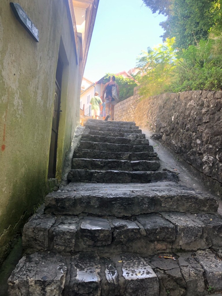 There are many, many, stairs in Herceg Novi and we climbed several flights to reach Mića Pavlovića square where we saw Osnovna Muzicka Skola and the Catholic Church of Saint Jerome which was built on the site of a mosque from the Turkish occupation.