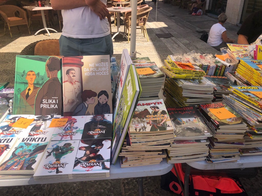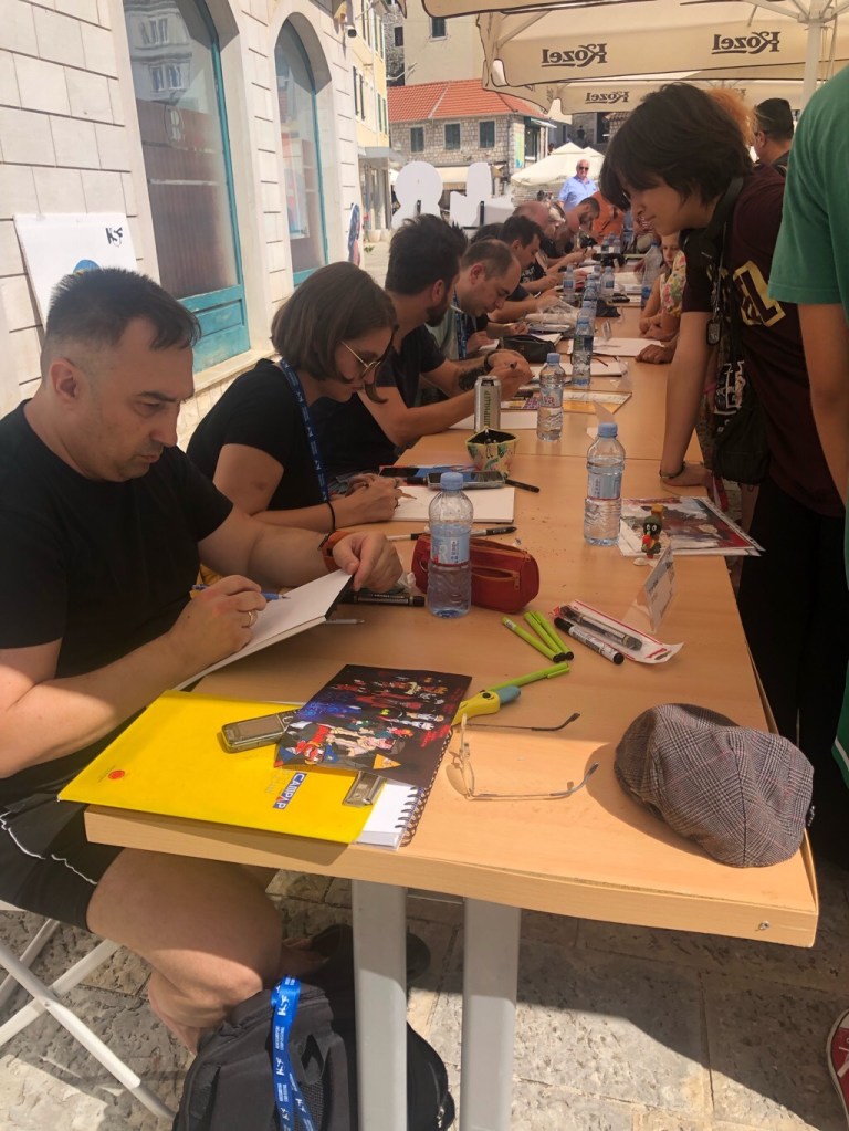 Further along there was a throng of people ahead and as we drew nearer we discovered that as part of the comic strip festival, artists were signing their work and talking to enthusiasts who were queued up patiently to chat with their favourites.
