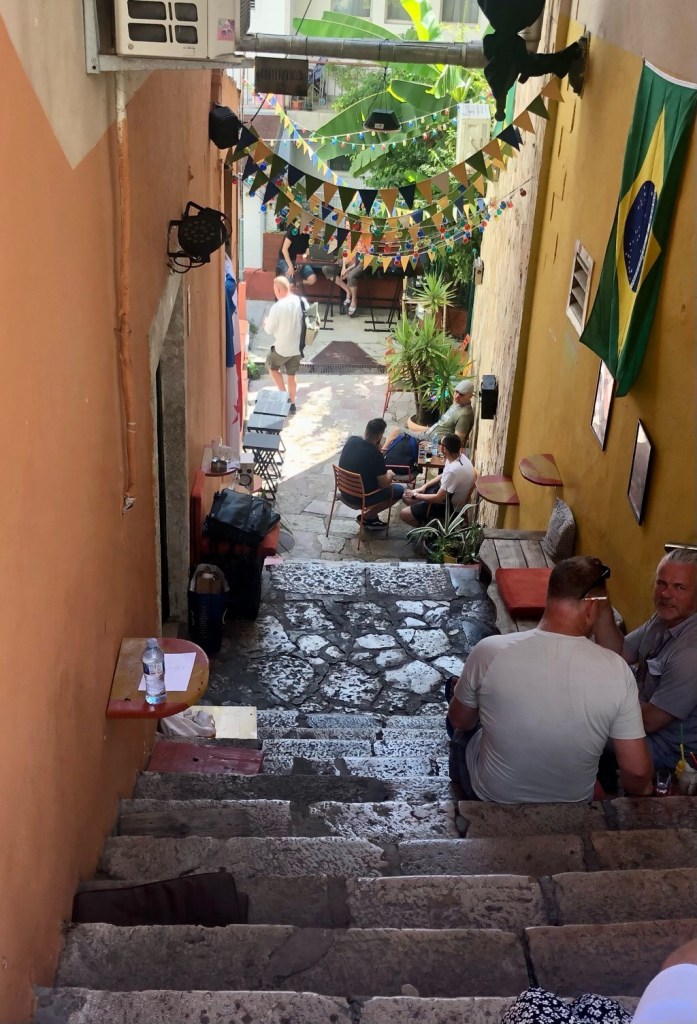 We walked under the clock tower and down some stairs into the main Belavista square and had some lunch at one of the many cafes there.