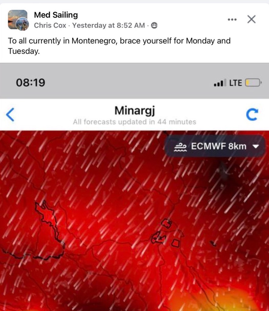 We had spent the day clearing up the mess caused by an intense rain storm which struck The Bay of Kotor just as we were leaving a BBQ party on M/V Entre Nous. The downpour was so intense that we couldn’t get back to Sunday to close the salon windows. When we did eventually get back to our boat there was quite a flood to deal with.