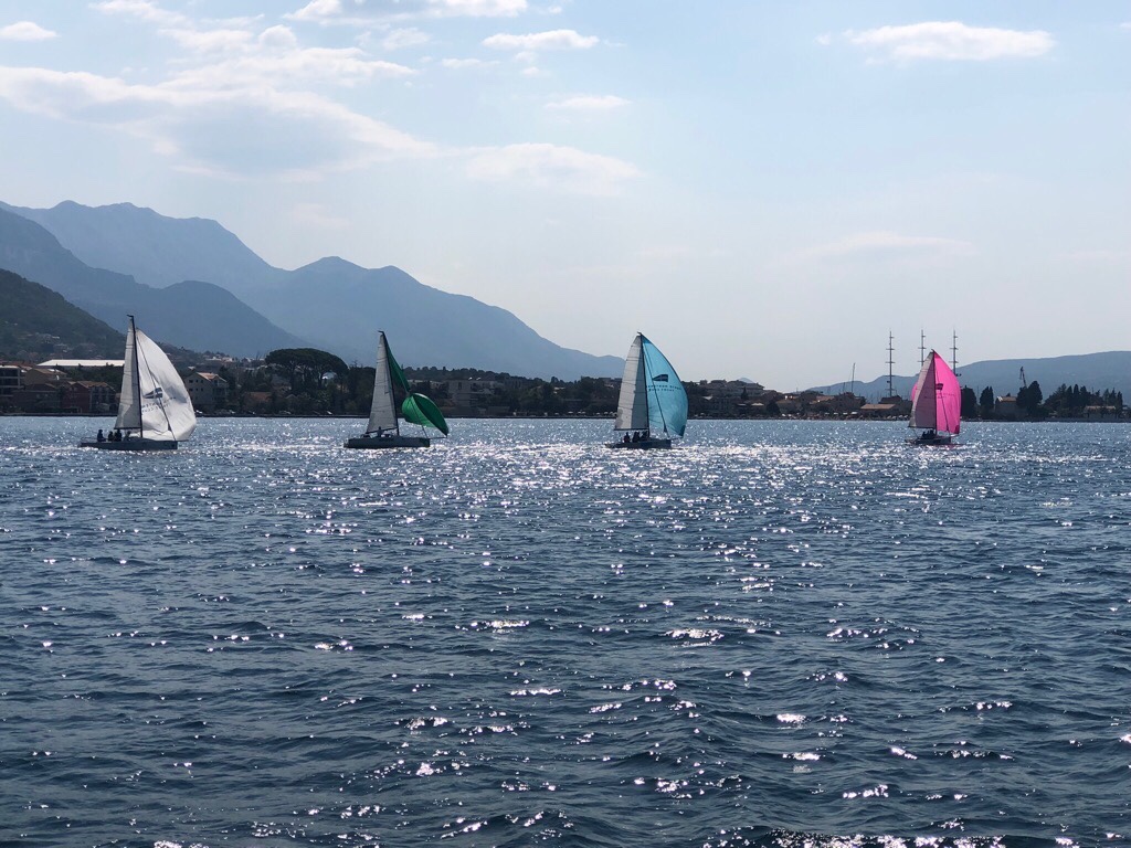 As the boats rounded a buoy they launched their colourful spinnakers making a delightful sight for us!