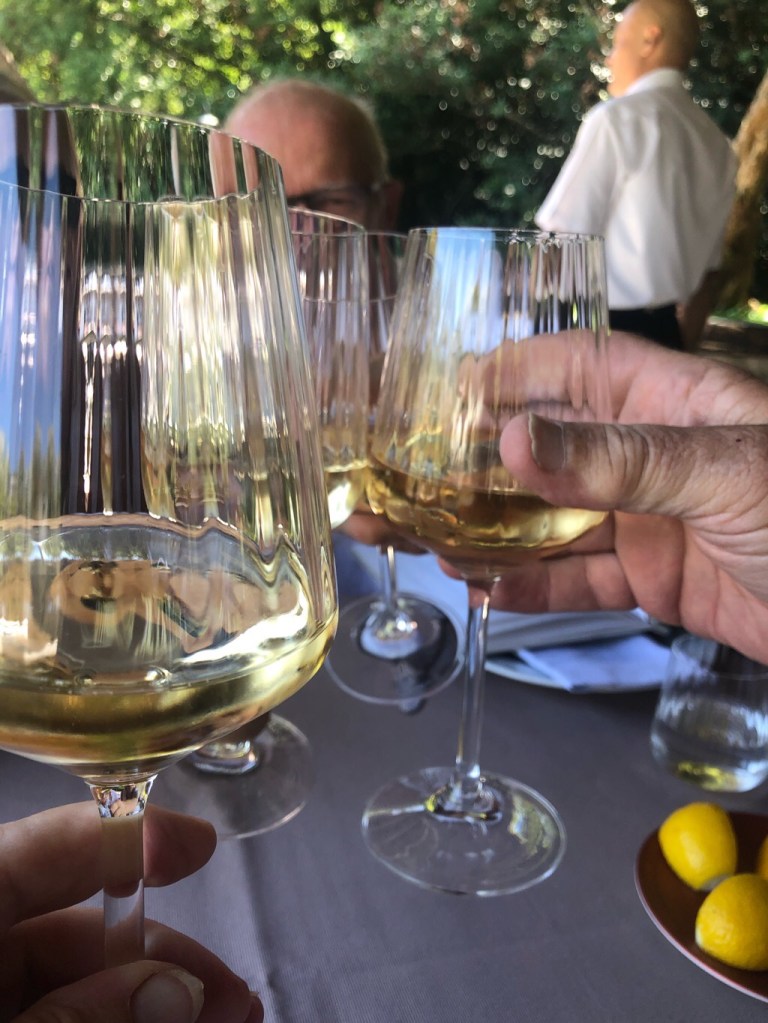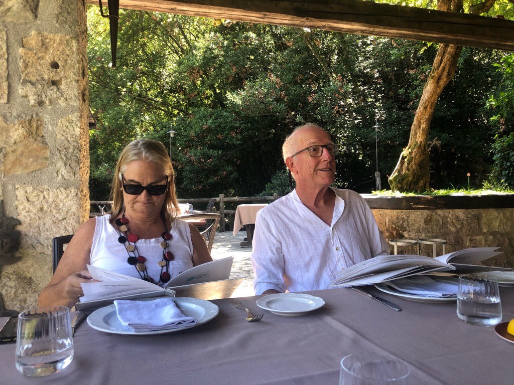 The food (a mere incidental in Jonathan’s book) was delicious and the local white wine was aromatic and quite the best we have tasted in a long time.