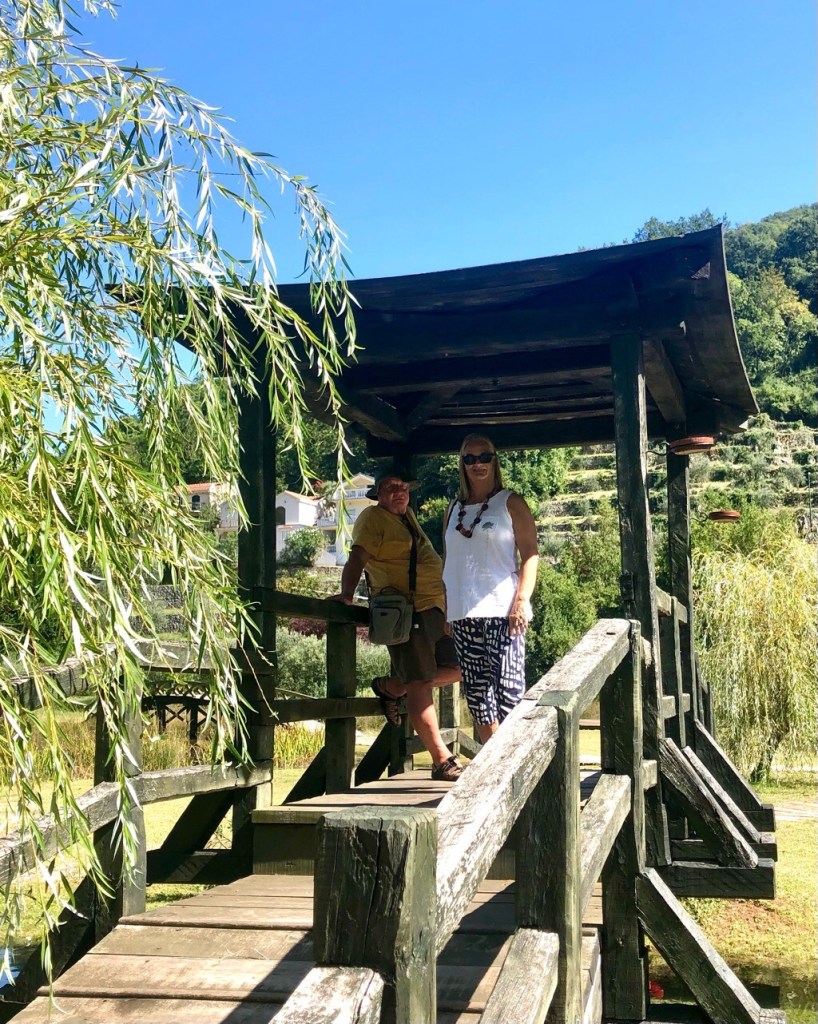 It was John and Jonathan who discovered this magical spot – on a dinghy ride pottering around, they followed a shallow and narrow river under a bridge and into a gorgeous garden – complete with bridges reminiscent of Monet’s garden, an old mill house and flocks of noisy ducks and comical geese. And best of all there was a beautiful restaurant there!