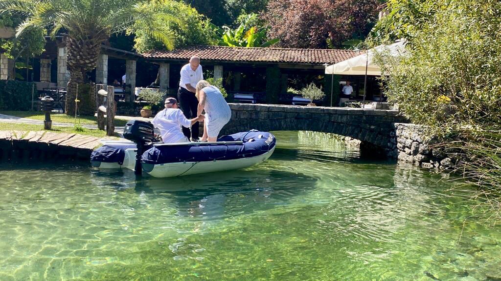 As we approached the restaurant, a waiter came out to tell us where to park our dinghies and to help us climb out. It was very kind but we are so used to negotiating high wharfs and knobbly concrete that the restaurant’s beautifully constructed quay made it easy to hop out relatively gracefully without any help! Nevertheless we accepted his hand with due gratitude.