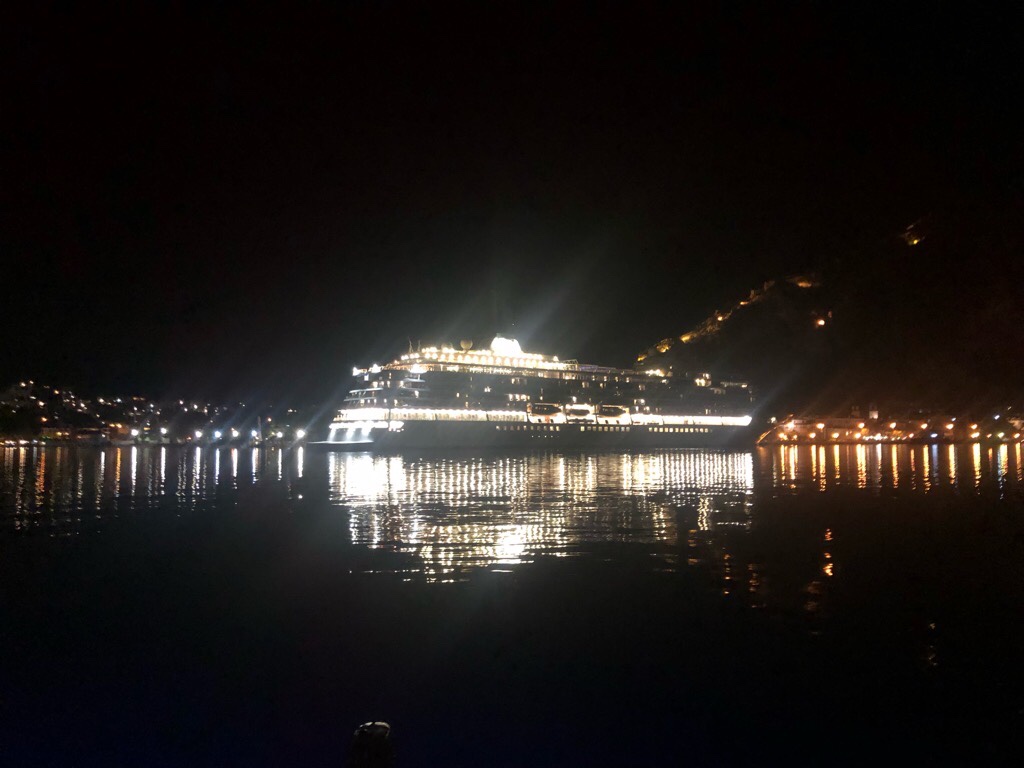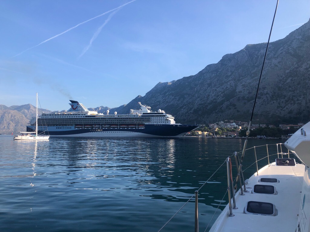 We felt rather small anchoring in Kotor not just because of the imposing San Giovanni hill rising steeply behind the ancient town, nor because of the towering and rather foreboding mountains that surround the anchorage but mainly because of the absolutely massive cruise liners moored outside the old city walls and only roughly 300 metres from where we were anchored!