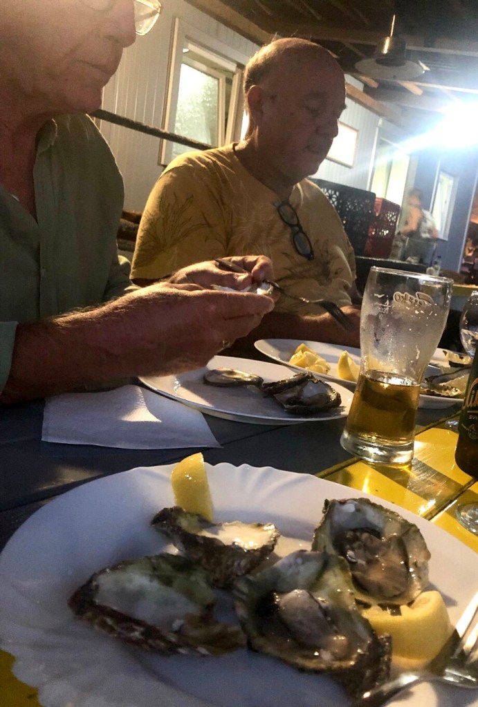 The only things on the menu were freshly caught oysters, small but wonderful tasting mussels and fresh fish – all served with copious amounts of crusty white home baked bread – no salad, no vegetables. Ooh and home made wine which was very drinkable and very cheap!
