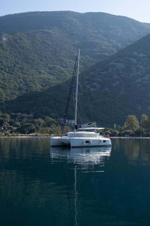 The following day we went for a lovely sail to Uvala Sutvara – the bay in which we had found the wonderful restaurant called Ćatovića Mlini. On the way we sailed close by the two most famous islands in the Bay of Kotor – Our Lady of the Rocks and Sveti Đorđe (St George) islands.