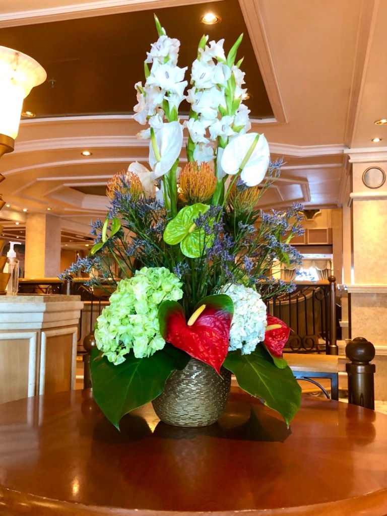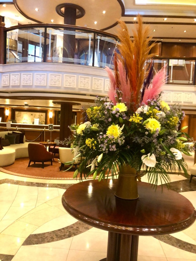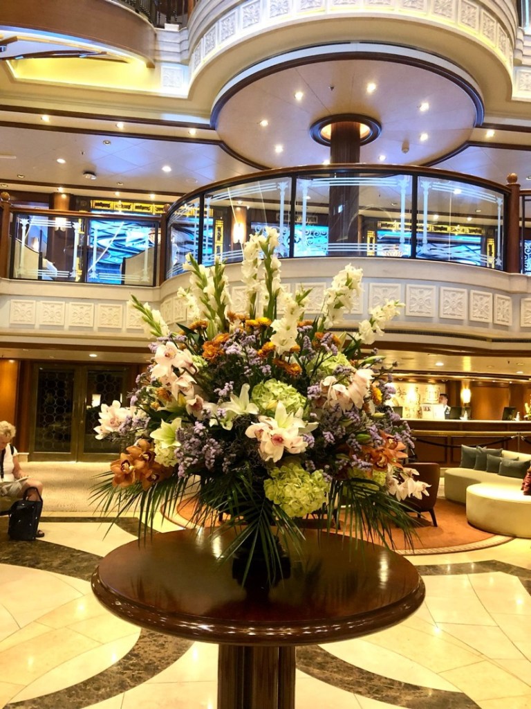 One of the small things that I appreciated each day was the stunning flower arrangement that appeared in the main lobby and other places around the ship and which changed regularly.