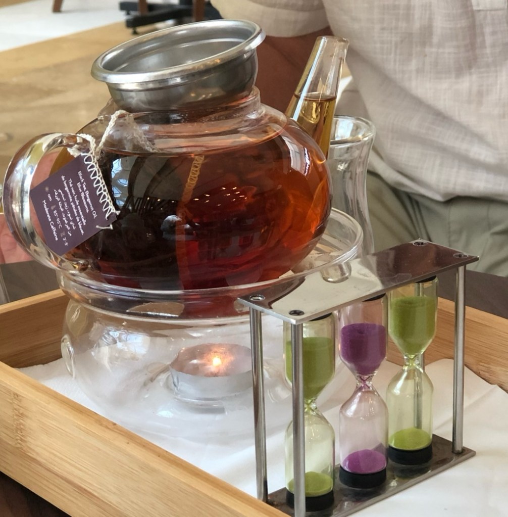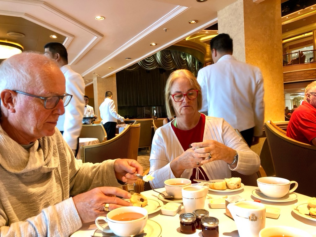 The tea was beautifully presented with three coloured sand egg timers to be used for weak/medium or strong tea and a massive jug of cold milk. We lingered long over our tea and free the internet before meeting our taxi to go back to the ship.