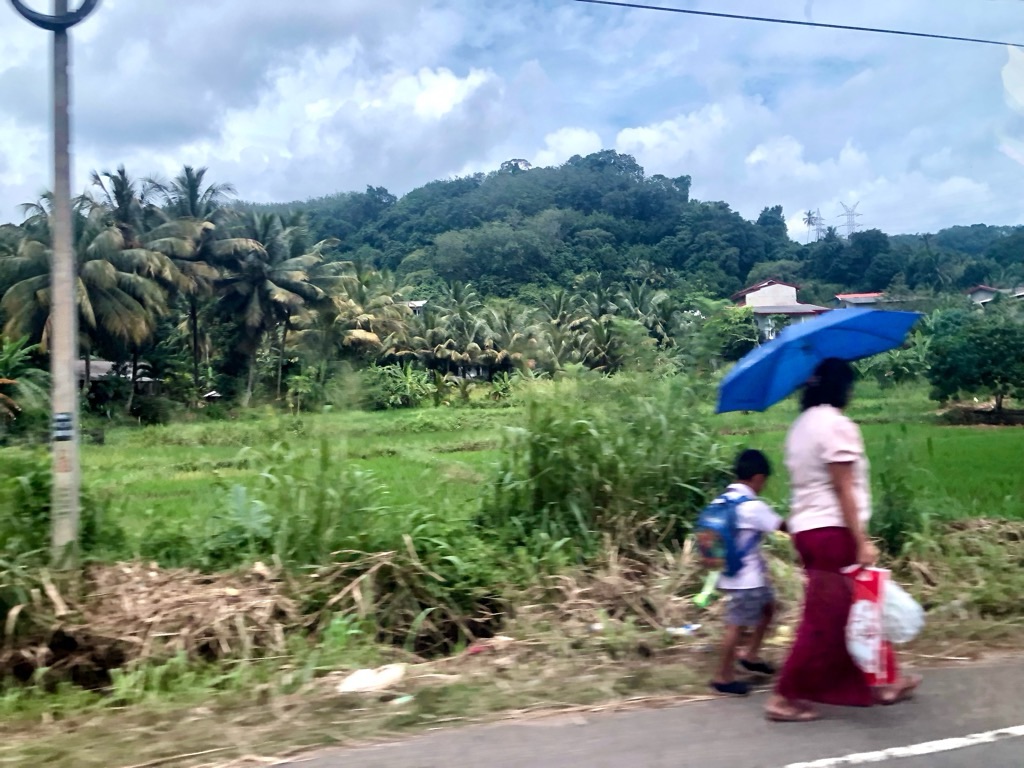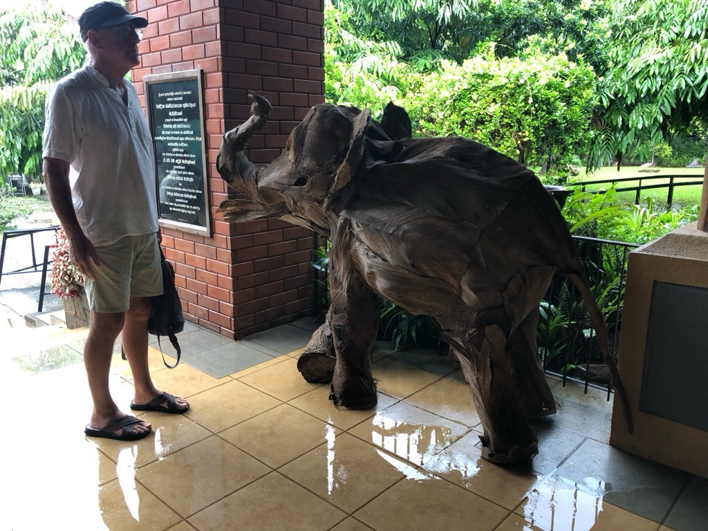 My main memory of the drive is the intense green of the luxuriant jungle. We also drive through villages and small towns where we could see the local people going about their daily business. Occasionally we would see an elephant and their mahout moving logs or performing some other task.