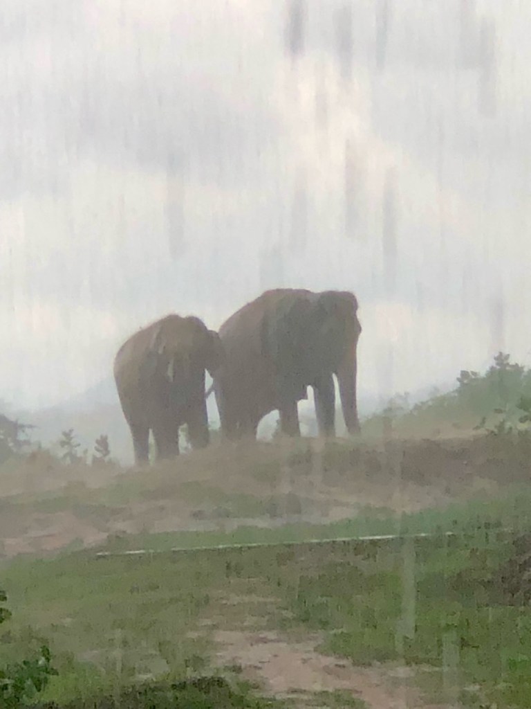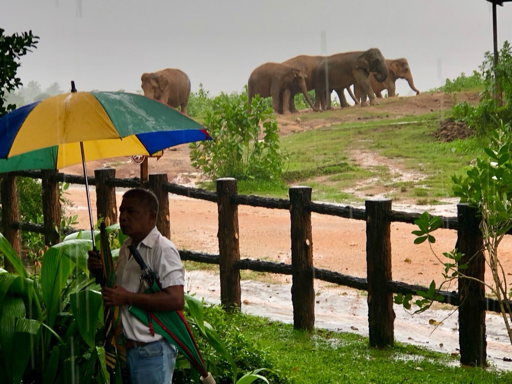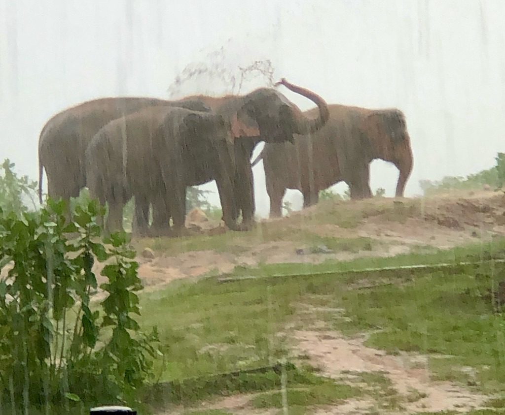 It was wonderful to watch the elephants playing in the rain – they absolutely loved it! Some rolled in the newly formed puddles while others scooped up the muddy dust with their trunks and deftly tossed it over their backs.
