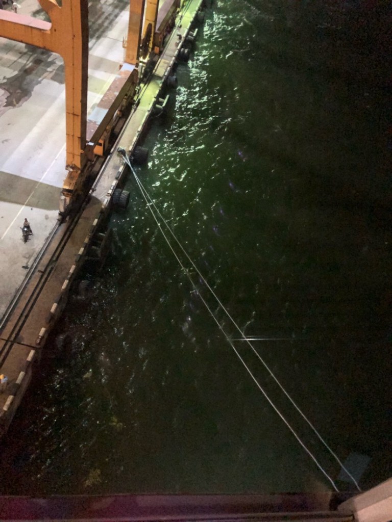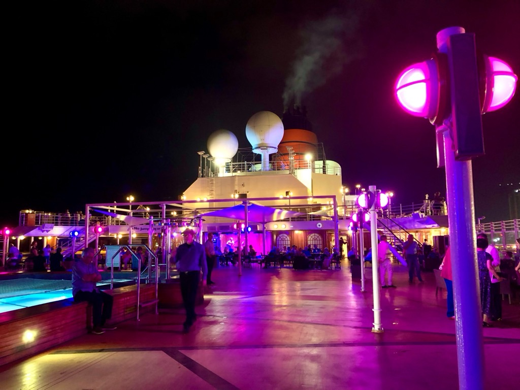 Back on board the Queen Elizabeth we watched the twinkling of the bright lights of Colombo in Sri Lanka as the boat was untied and we slowly drifted off from the quay.