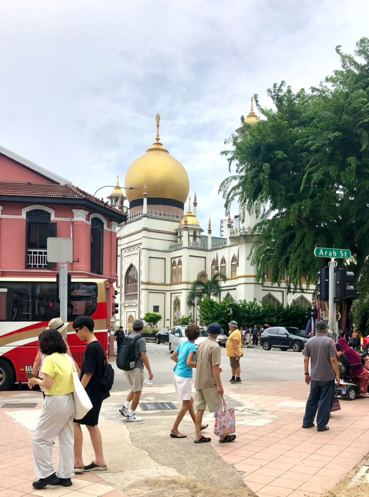 Feeling very full we walked around the Kampong Glam district and enjoyed the brightly coloured shop houses and looked at the carpets, silks and other fabrics on sale.