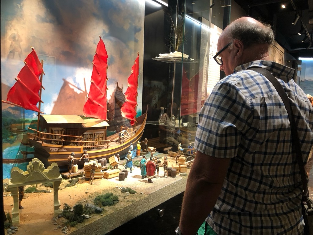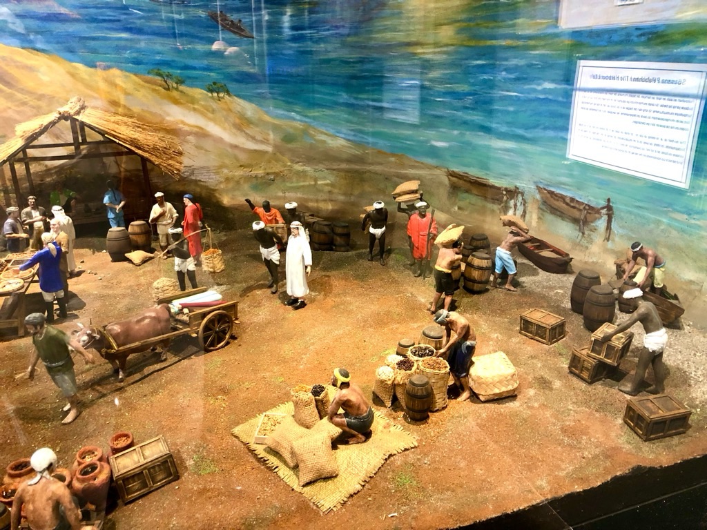We spent a fascinating couple of hours wandering round the museum which was chock full of model boats, dioramas, maps and charts, displays and models relating to Indonesia’s maritime heritage and the VOC (the Dutch United East India Company founded in 1602). There was also a mock up of a ship’s bridge and a ship’s hold from the 17th Century – the height of the spice trade.