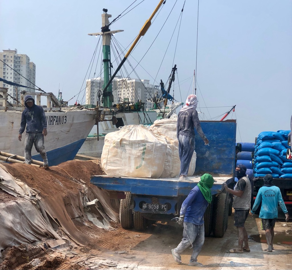 Our last stop for the day was the boat yard at Sunda Kelapa – Jakarta’s oldest port – to see the beautiful Makassar schooners called ‘pinisi’. Traditionally a pinisi was a sailing boat used for carrying cargo to the many hundreds of islands in Indonesia but nowadays they are mostly converted to engine power.
