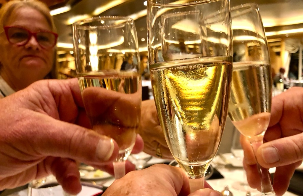 That night, as we sailed for Jakarta on the Indonesian island of Java there was a special gala night to welcome all the new passengers who had boarded that day (more than half of passengers who had started in Barcelona had disembarked). We drank complementary champagne at dinner and enjoyed the party atmosphere.