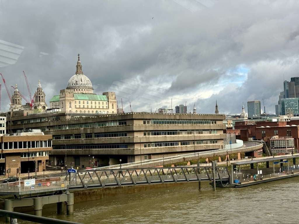 Jonathan and I were actually quite pleased about the disrupted journey because we had not yet visited the “new” (it opened in 2012!) Blackfriars Station which actually has its platforms on a bridge over the River Thames – the only London station to do so.