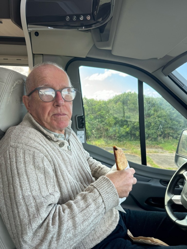 Our first stop was Geevor tin mine in Pendeen. Many of Jonathan’s forbears had worked here including both his uncles. As well as a mining museum, there is a very nice cafe there which, we were told, sells very good pasties. Of course we had to buy one but as it was soon after breakfast, we took them as takeaways.