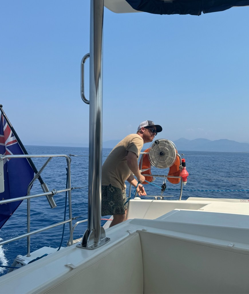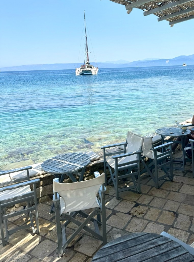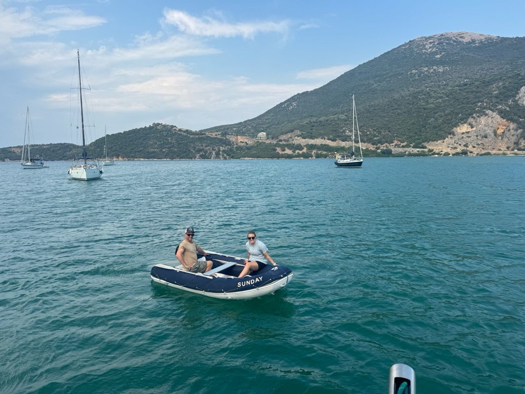 We spent the first night at Koukounitsa Island in Vonitsa Bay. This is a beautiful spot which we found first in 2019 when we drove our camper van to Greece to see Sunday for the first time. Staying here with Jarrod and Kat when they were seeing Sunday for the first time provided a strange synchronicity.