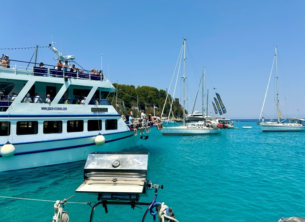 We (Jonathan and I and my sister Julia) thoroughly enjoyed staying in Lakka on the small Ionian island of Paxos, despite the increasingly crowded conditions.
