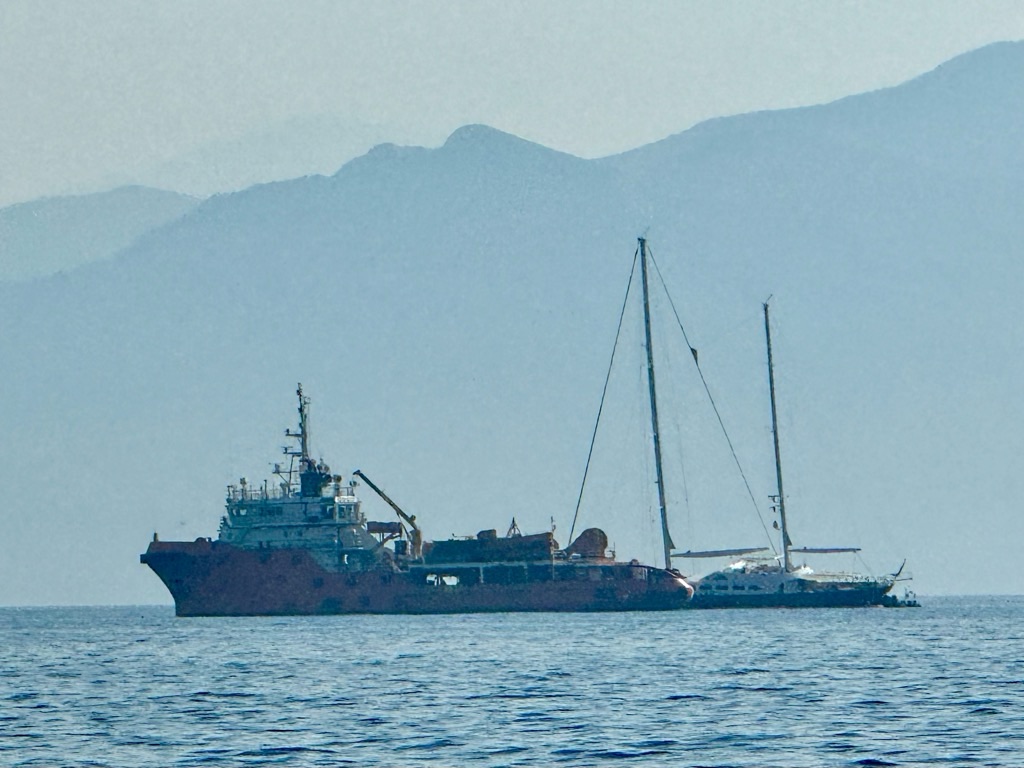It turned out to be a 46.5-metre Perini Navi sailing yacht called Tamara. This reef is clearly marked on the charts and can also be seen clearly by the naked eye so we cannot think how the captain managed to miss it. Very strange!
