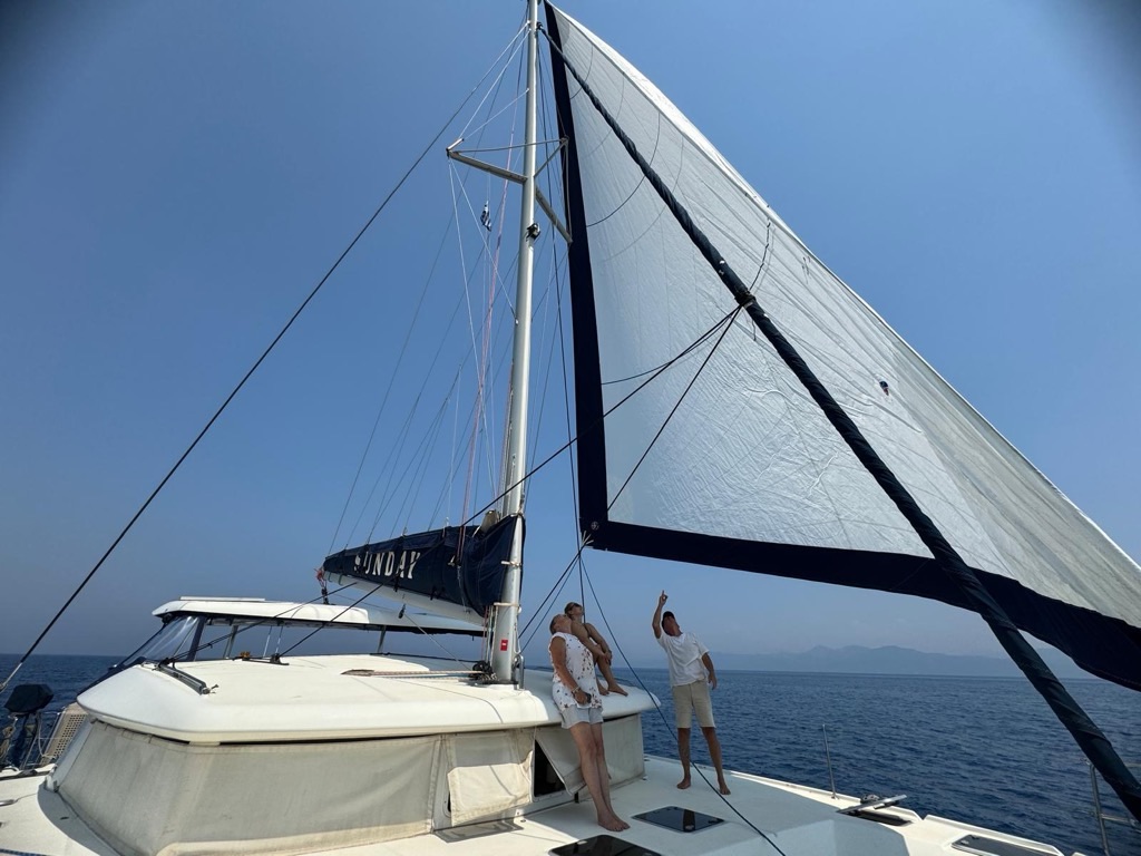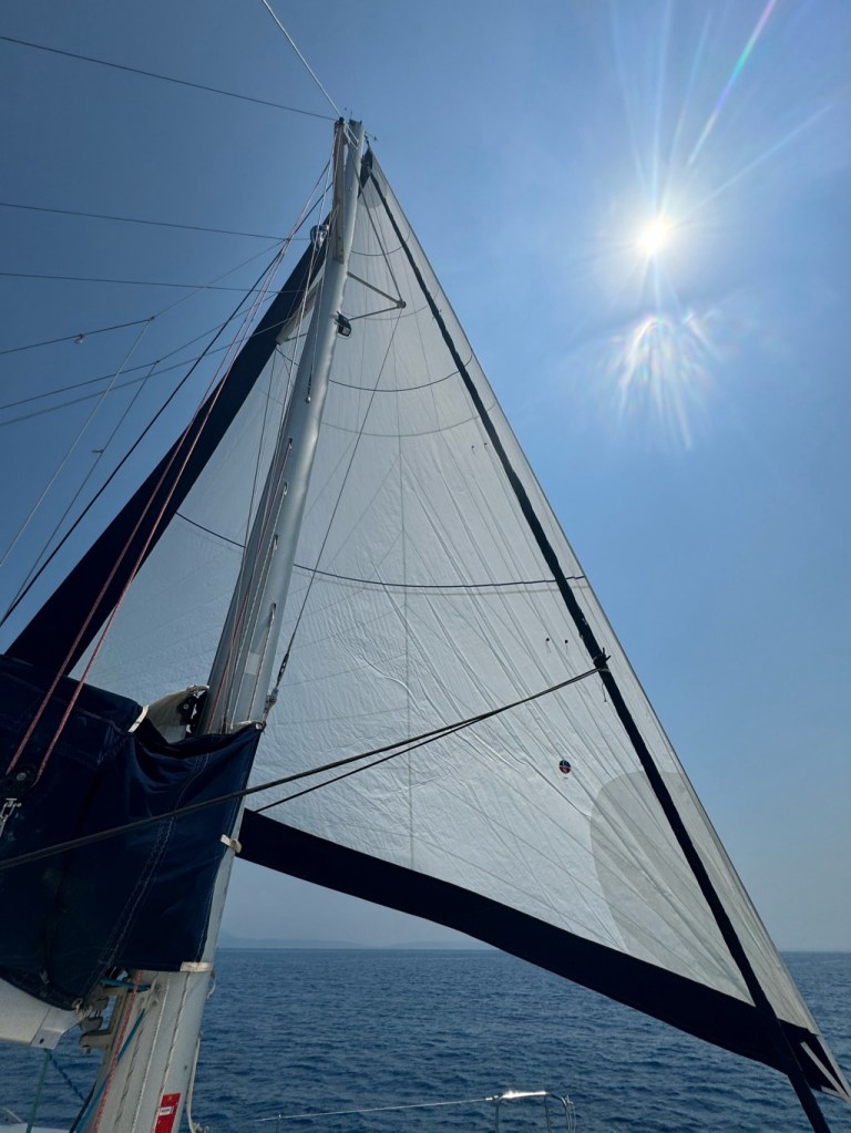 On the way to the main land we were able to raise the sails and we were very pleased to see they were all in great condition despite the fact that they hadn’t been stored on shore over winter – something we normally do but didn’t do this season as we couldn’t find a sail loft in Montenegro that provided this service.