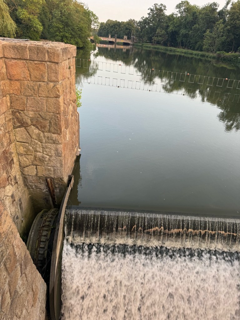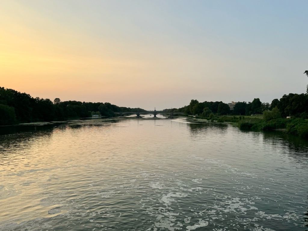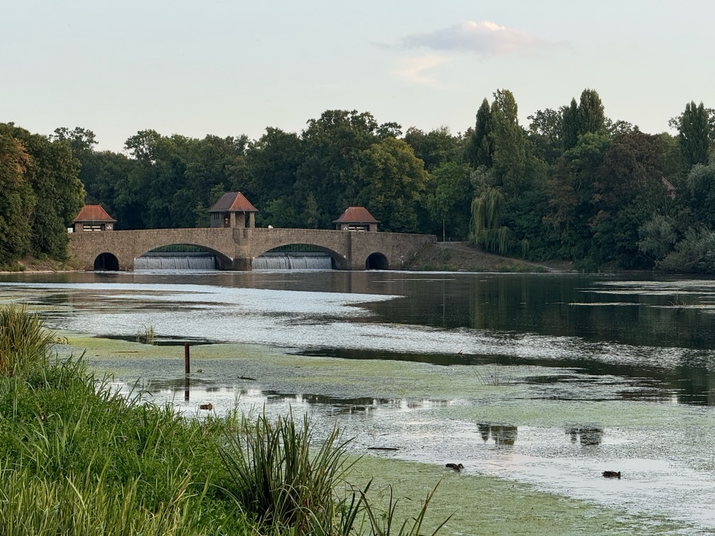 We had a lovely walk along the banks of the Elster River basin to the Palmengarten Weir and back through the University grounds to our campsite.