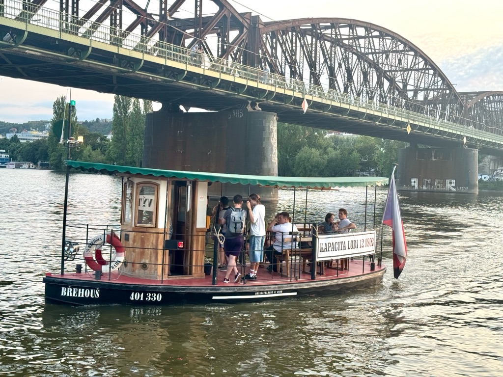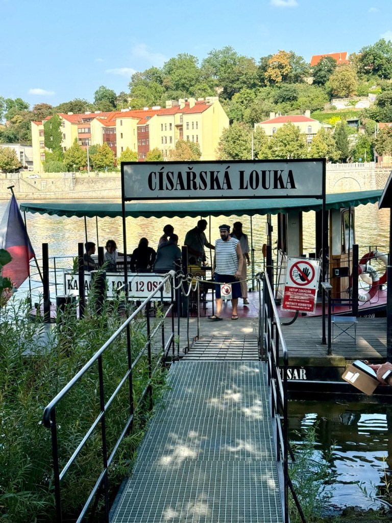 We found a fabulous campsite on an island on the River Vltava which runs through Prague. From there we could catch a ride on a cute little ferry (free to us we found out as we are elders) to the bank on the city side.