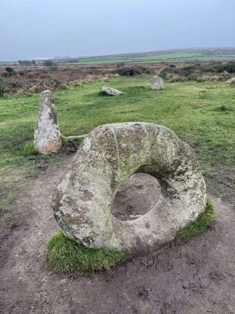 Measuring approximately 1.3 metres across with a large hole at its centre, the Mên-an-Tol has had many a curative and magical powers attributed to it, including curing back pain.