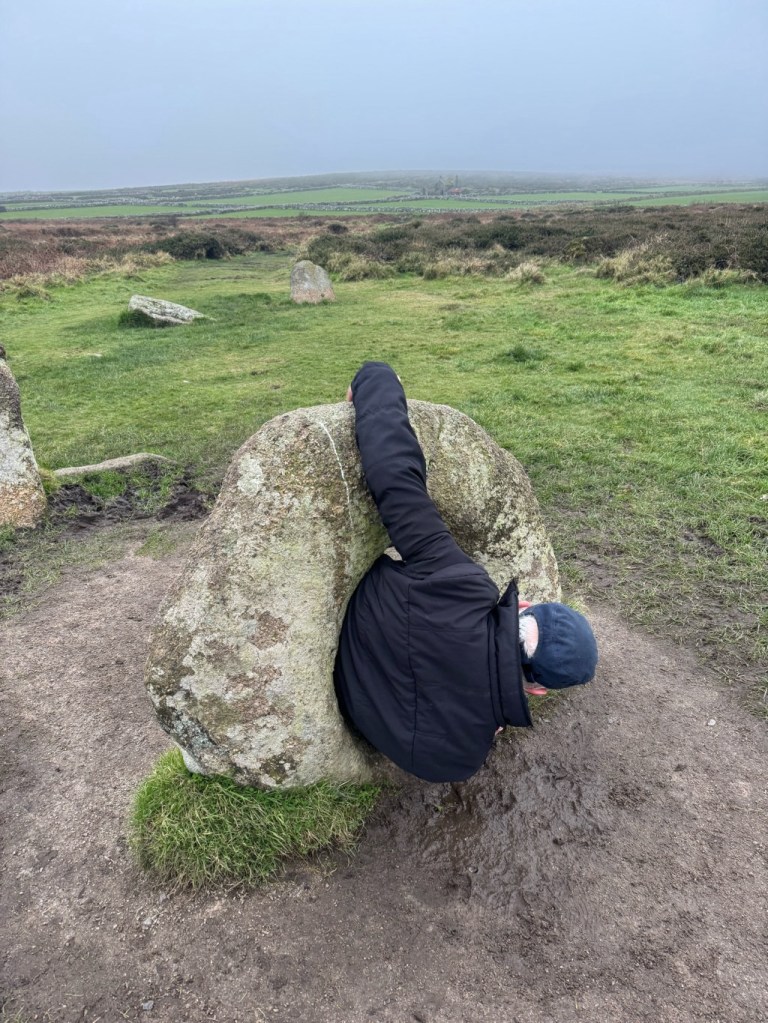 As Jonathan has had a bad back for some considerable time now, he decided to give it a try. Sad to say, it doesn’t seem to have made a huge difference to “the crick” in his back. It was fun seeing him wiggle through the hole in the stone though!