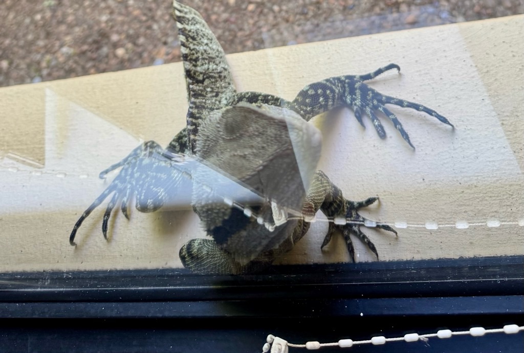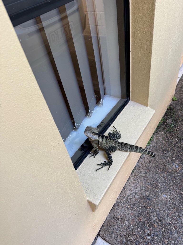 As well as this water dragon knocking on the window next to the front door one day, we have seen loads of skinks and geckos in our tiny yard, and a possum who usually visits at night but has walked boldly along the top of the fence while we were sitting outside.