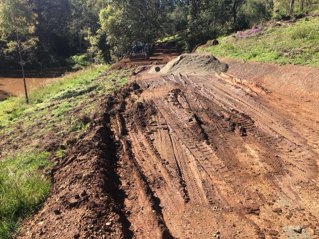 The constant rain here has meant we have had to delay transporting our water tanks on-site and to rethink our driveway drainage system.